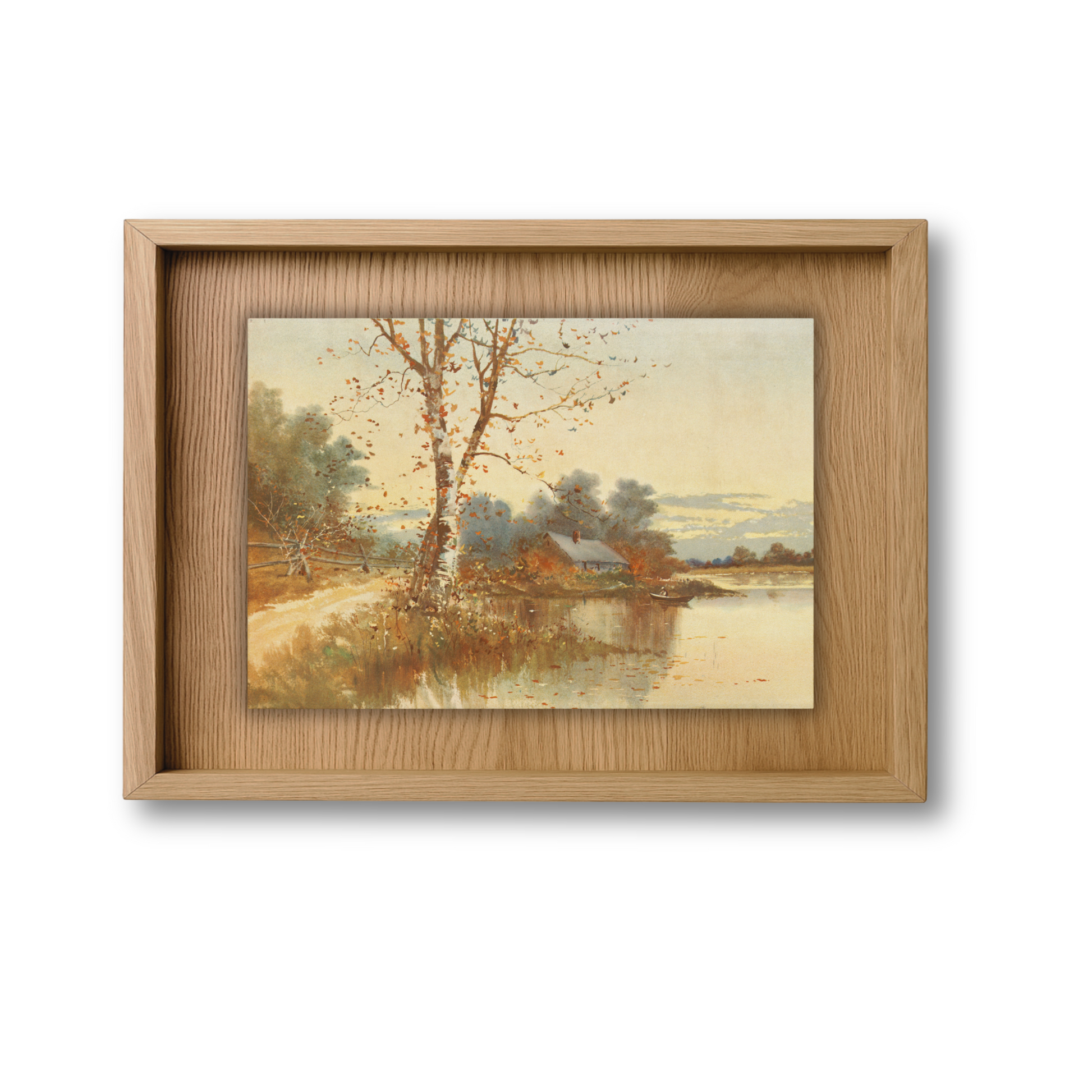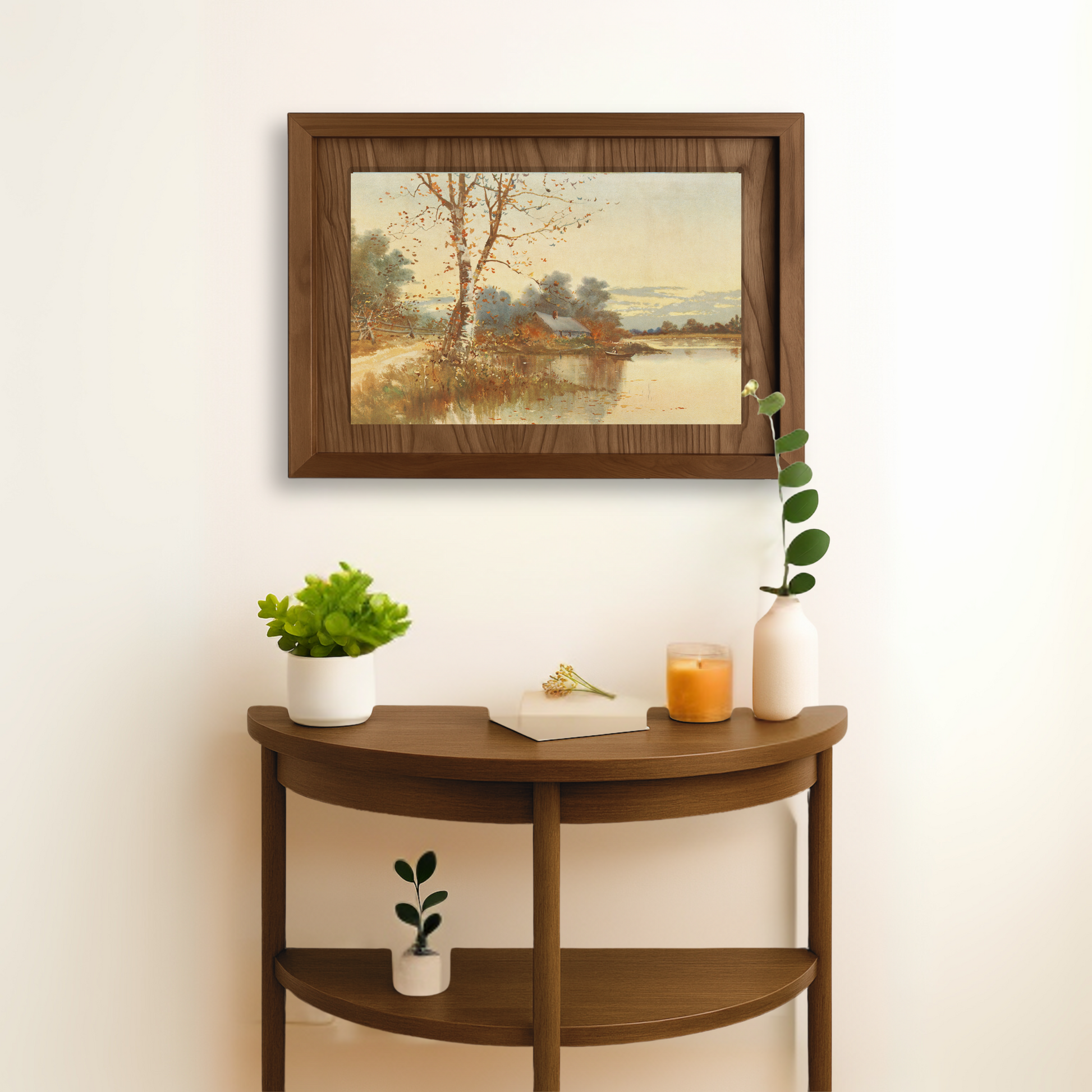 Bring the warmth of a rustic autumn afternoon into your home with this tranquil watercolor-style print.