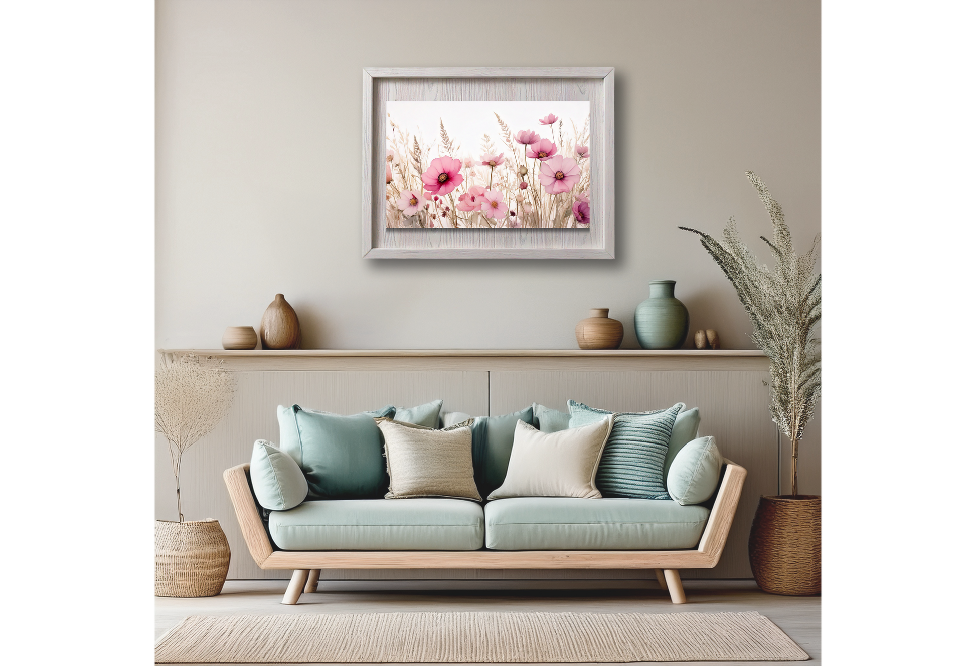These canvases are designed to be interchanged with the different frame sizes to fit the style you are looking for. They will fit snugly with the smaller sized frame so there is just a basic frame around it, or to allow space with the larger frames. You can mix and match them however you please.